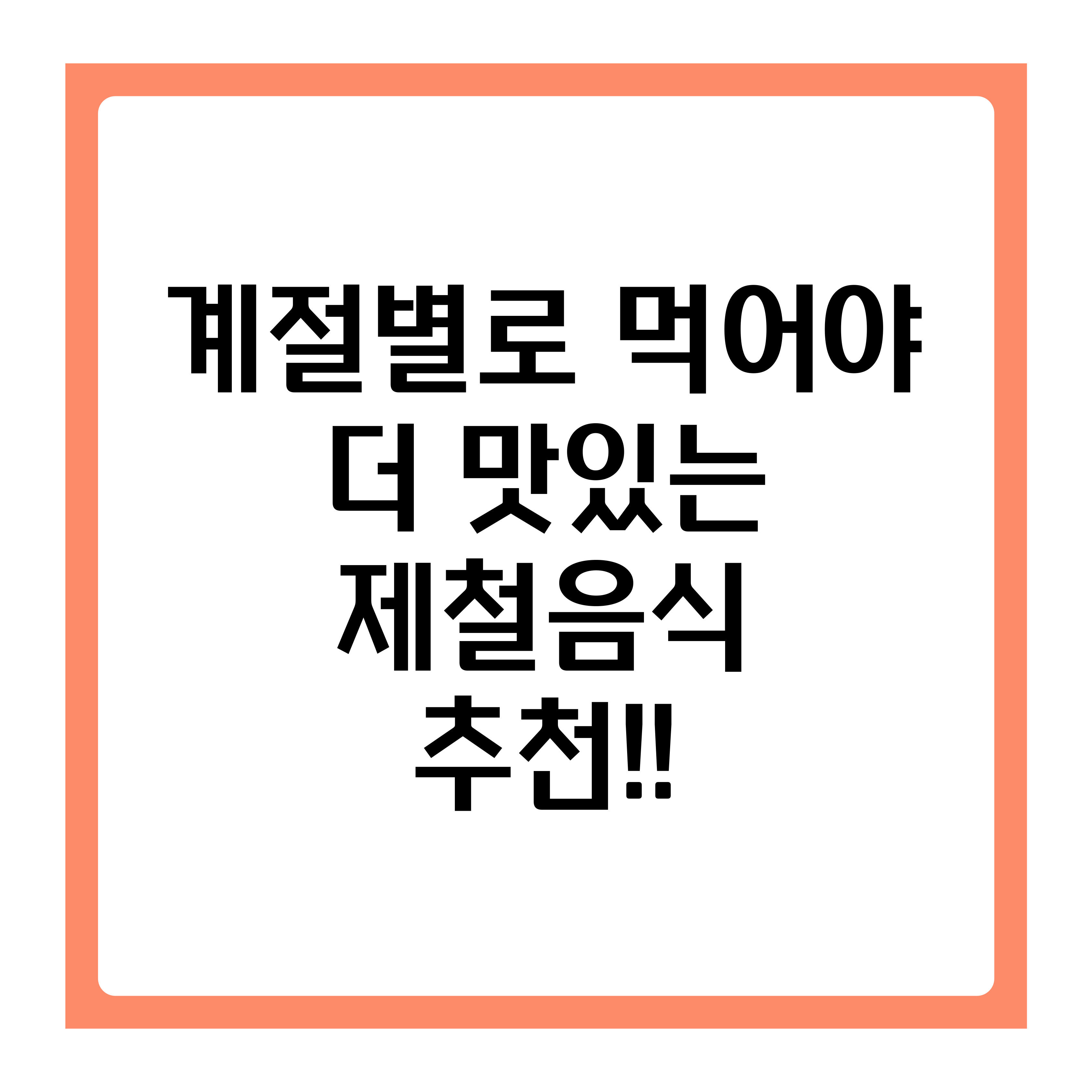 자연이 주는 최고의 선물, 제철 음식! 각 계절마다 가장 신선하고 맛있는 음식들을 소개합니다.